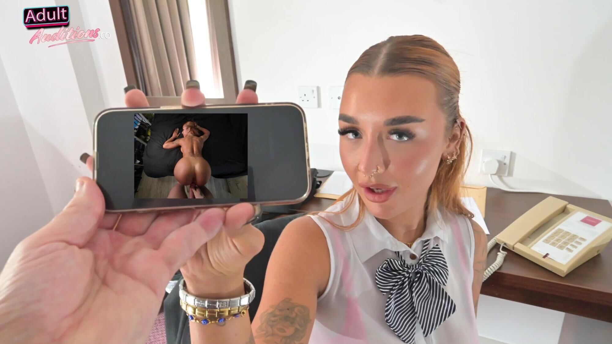 Sapphire’s acting is amazing now as she plays part of hitchhiker that gets lured to hotel room for creampie video audition with hole in tights. Luckily it was a fine day with not too many members of the public around, but Sapphire wouldn’t care anyway as she would just carry on acting the way she likes. This also could be one of Sapphire’s horniest performance, non stop orgasms while being fucked in various positions ending in a big pussy load of cum all caught on camera squirting out! Messy girl!